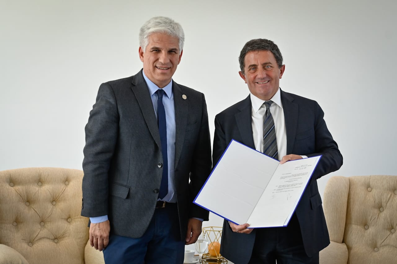 El gobernador Claudio Poggi recibió en su despacho de Casa de Gobierno al cónsul general de Italia en Mendoza, Giussepe D’Agosto y le entregó el decreto de Huésped de Honor.