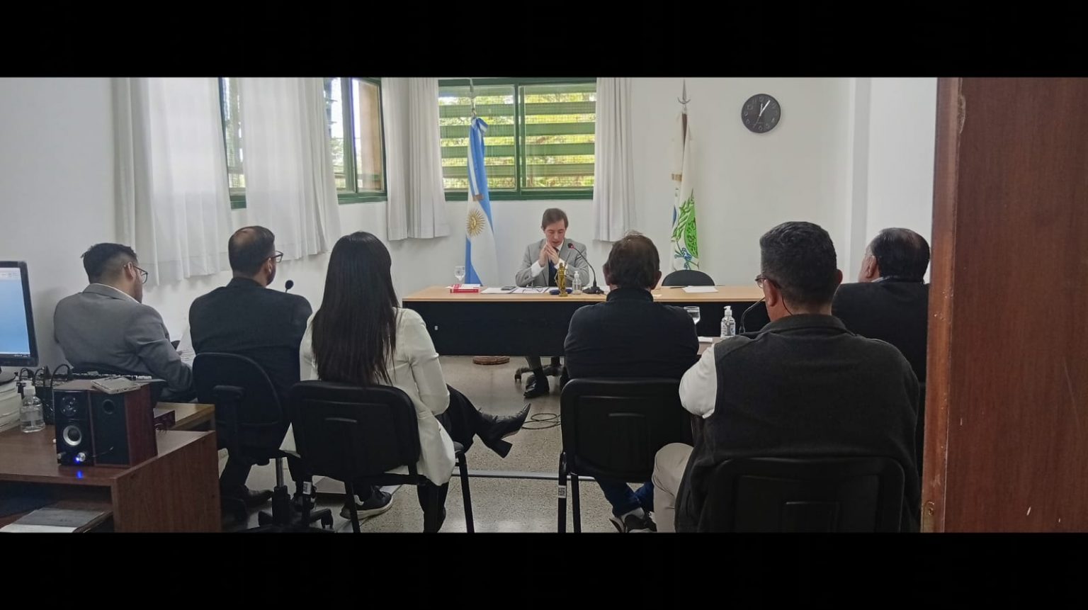 La audiencia fue presidida por el juez Nicolás Coppola. En representación del Ministerio Público Fiscal (MPF) intervino el fiscal de Instrucción N° 1, César Salazar Molina, y la fiscal adjunta Silvina Argüello, ambos de la Tercera Circunscripción Judicial. También estuvo presente el fiscal de Estado, Santiago Calderón, quien adhirió a la acusación presentada por el MPF. La defensa del imputado estuvo a cargo de los abogados Juan Orlando Villegas y Francisco José Muñoz.