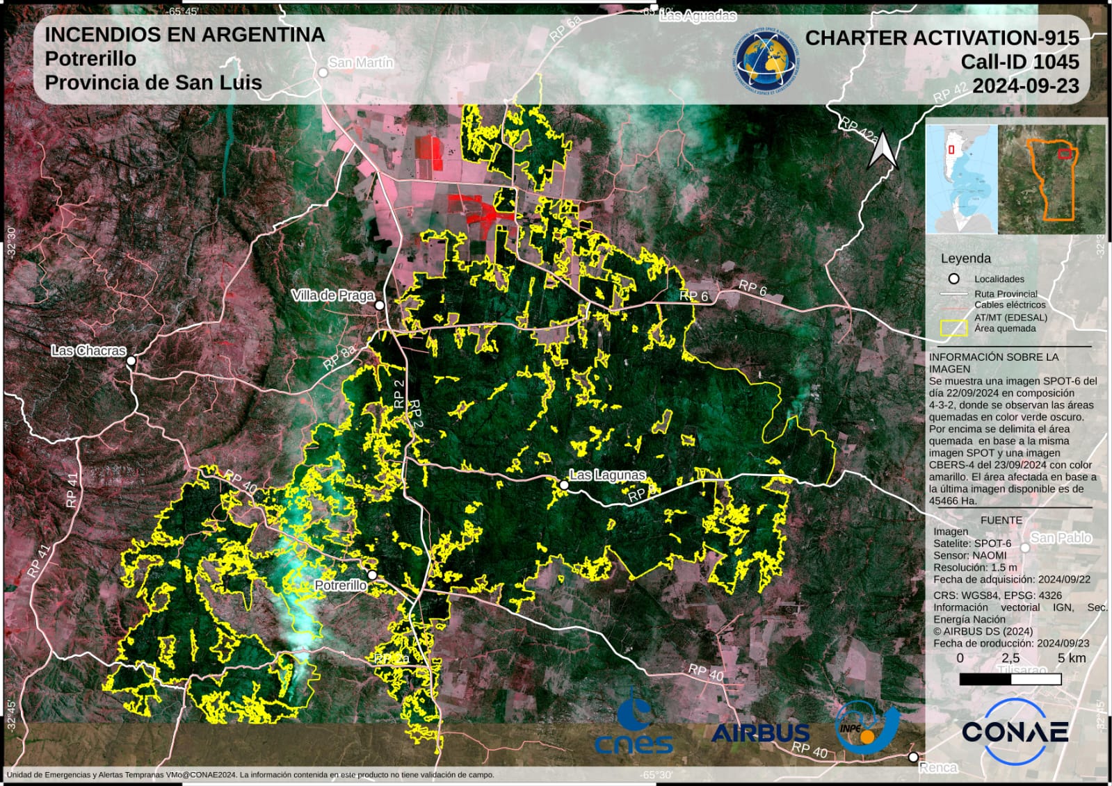 La Comisión Nacional de Actividades Espaciales (CONAE) envió el reporte final sobre la superficie afectada por los focos que tuvieron en vilo a vecinos de varias localidades y parajes del norte de San Luis.