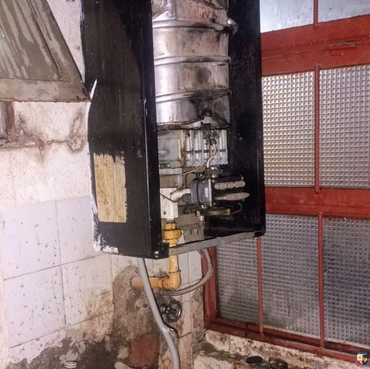 Personal de Bomberos de la Policía ingresaron a la vivienda y realizaron el corte de suministro y ventilaron los ambientes. Seguidamente, realizaron una inspección y constataron que la pérdida de gas se había producido por un desperfecto en la instalación de un calefón, el cual no tenía la salida correspondiente de escape de gas.