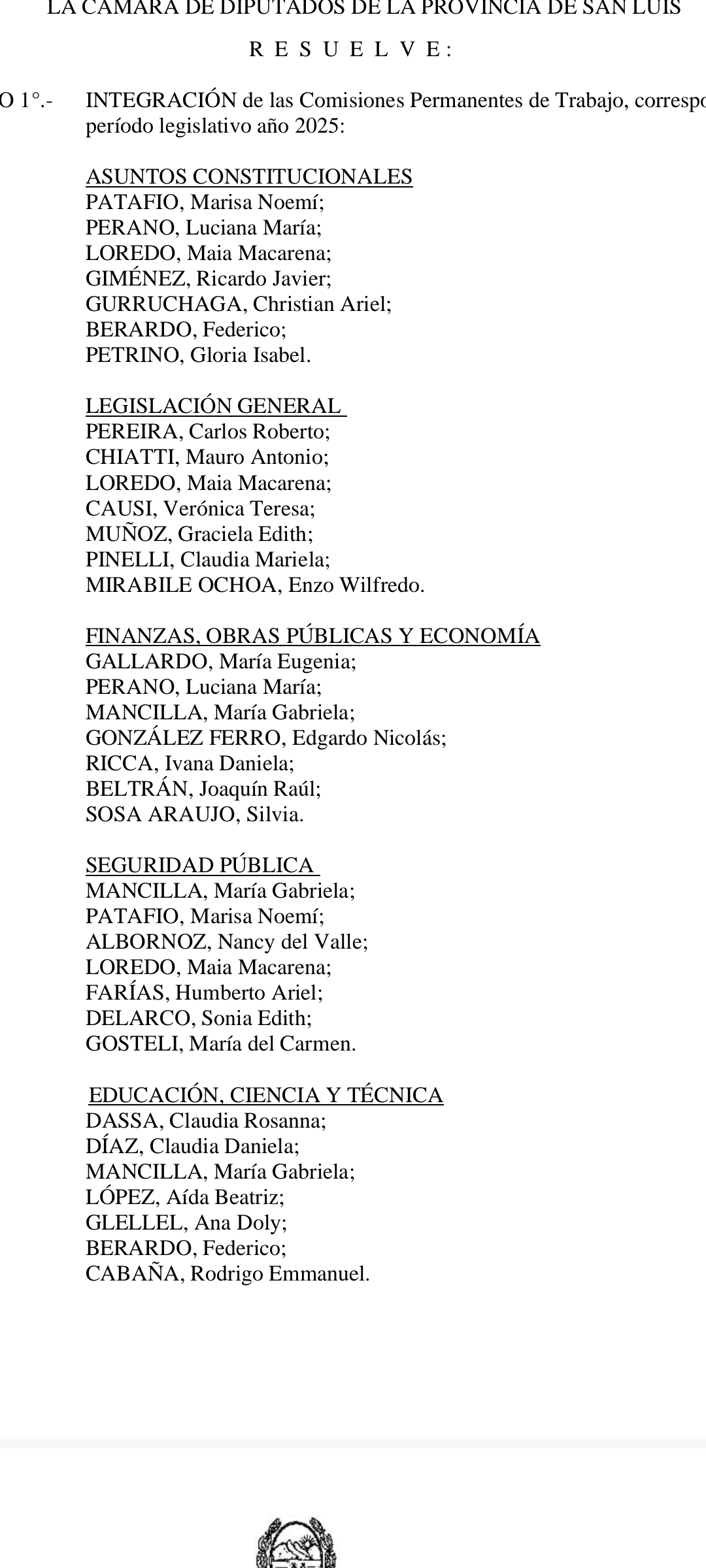 • Solicitar informe al Ministerio de Seguridad por posibles irregularidades en la Dirección General de Recursos Humanos de la Policía Provincial.